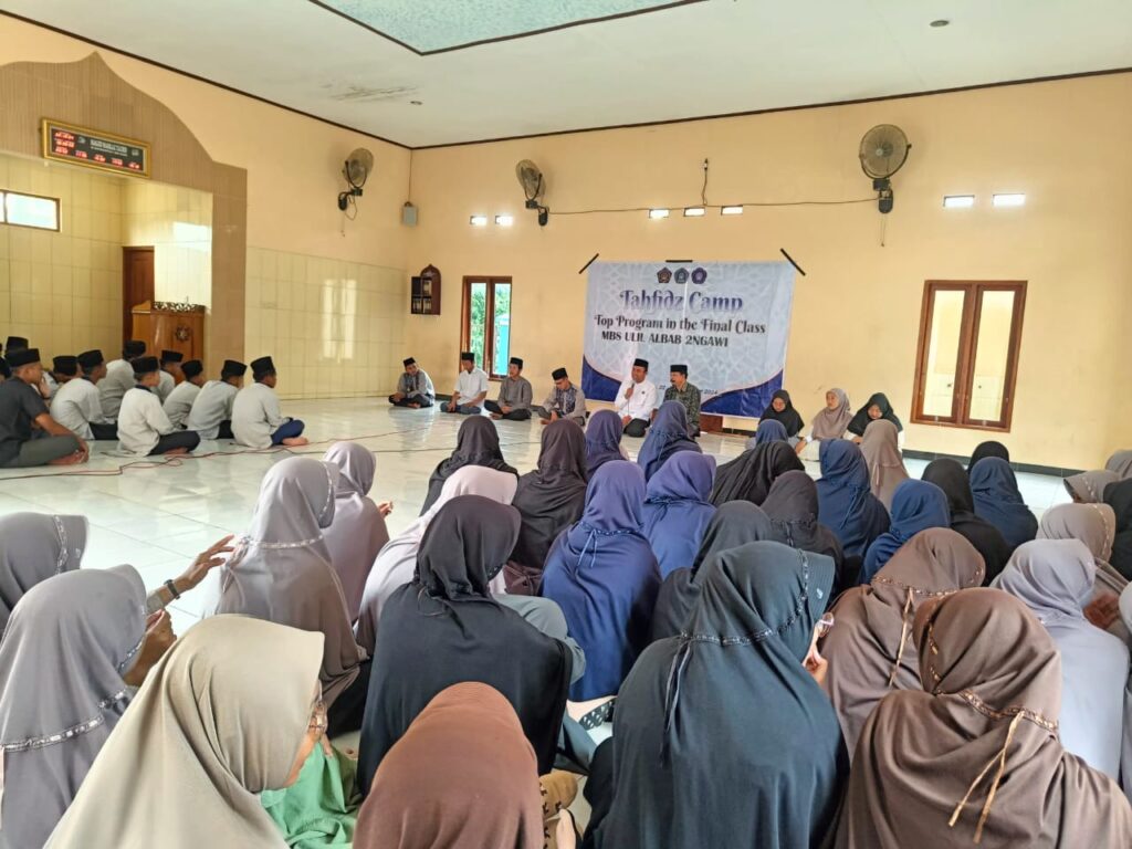 "Program unggulan Tahfidz di Pondok Pesantren MBS Ulil Albab 2 Ngawi dirancang untuk membantu siswa SMP dan SMK menghafal Al-Qur'an secara sistematis. Dengan kurikulum yang mengintegrasikan pendidikan agama dan akademik, serta pendampingan intensif dari pengajar berpengalaman, siswa mengikuti jadwal khusus untuk menghafal dan murojaah. Lingkungan pesantren yang kondusif mendukung proses menghafal, memungkinkan siswa untuk mencapai target hafalan sambil menerapkan nilai-nilai Al-Qur'an dalam kehidupan sehari-hari."